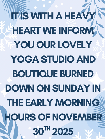 It is with a heavy heart we inform you our lovely Yoga studio and boutique burned down on Sunday morning November 30th 2025